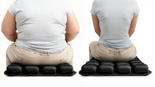 Foam compresses the same way regardless of who's sitting on it. It doesn't adjust to your weight, your shape, or where your specific pressure points are. It just flattens. Which is why the same cushion that feels fine to one person feels completely useless to another, and why even a cushion that worked at first stops working after 30 or 40 minutes once it's bottomed out under your body heat and weight.