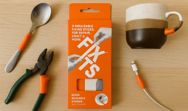 Du hast FixIts vielleicht in BBC Ones Dragons' Den gesehen, wo die Unternehmer Chris Lefteri und Forrest Radford die Drachen so beeindruckten, dass sie eine Investition von Steven Bartlett sichern konnten. Dies war nicht einfach irgendein Pitch – Bartlett nannte FixIts ein "Aha!-Produkt" und sagte, es "könnte in sozialen Medien durchstarten" mit dem richtigen Marketing.