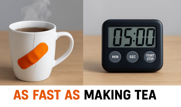 Sie haben eine solide, nutzbare Reparatur in der Zeit, die es braucht, um eine Tasse Tee zu machen.