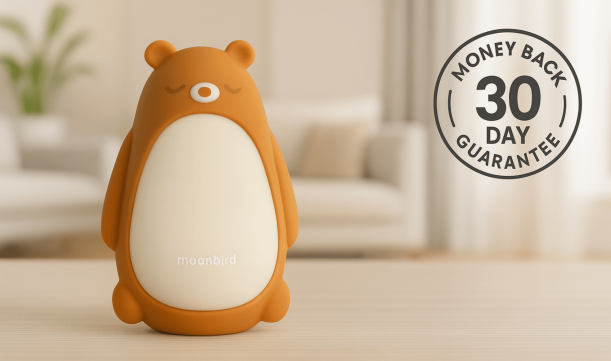 Ditt barn kan prova Moonbuddy hemma i en hel månad, och om du inte ser ditt barn använda den regelbundet, sova bättre och utveckla verkliga lugnande färdigheter, kan du helt enkelt returnera den för en fullständig återbetalning.